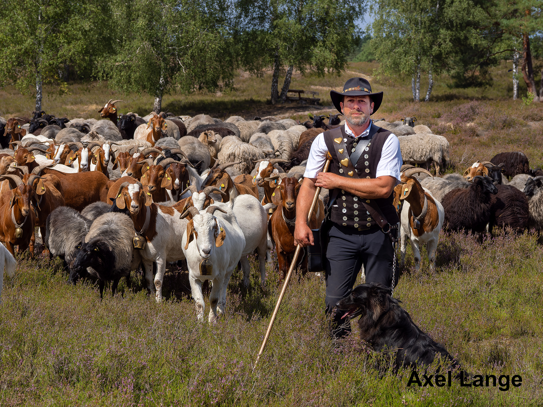 Wir durchwandern (eher ein Spaziergang, denn die Tiere bestimmen das Tempo) eine wunderschöne Heidelandschaft, mit unterschiedlichen Schafsarten, Ziegen, Heidschnucken und einem netten