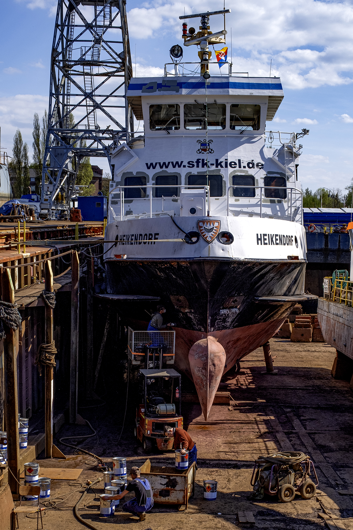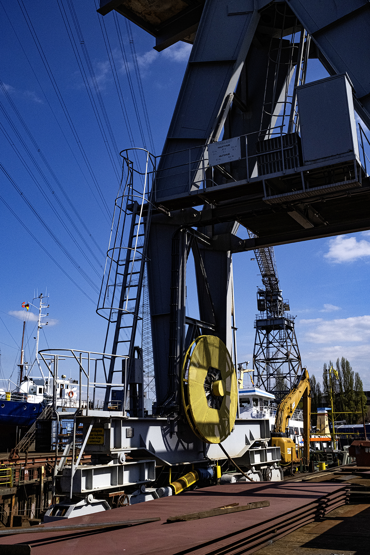 ausmacht. Arbeitsräume, Trockendock, unterschiedliche Schiffstypen, Strukturen, Arbeitsgeräte und vieles mehr.